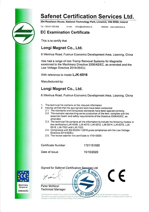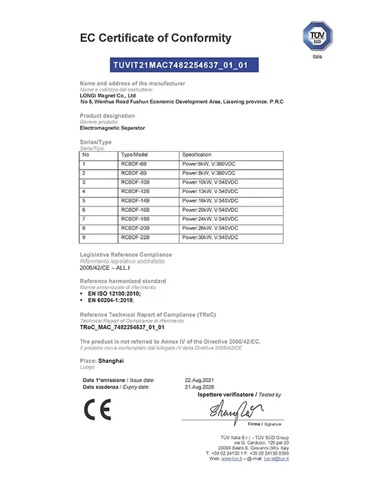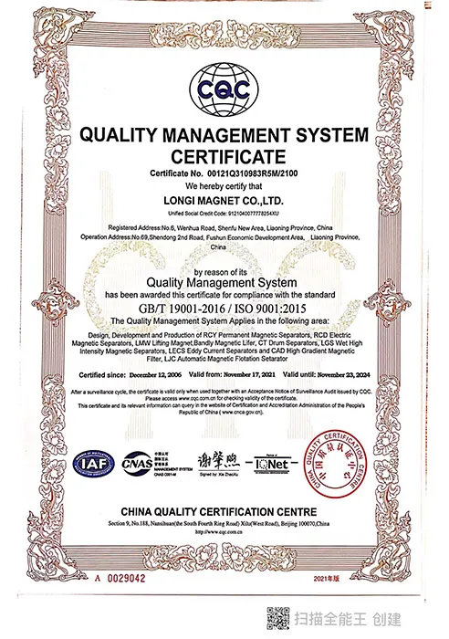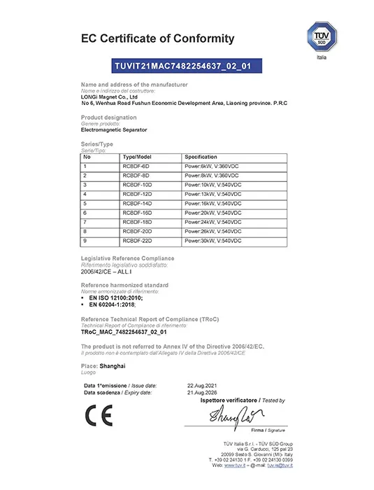 В настоящее время ЛОНДЖИ является ведущим профессиональным производителем и поставщиком в Китае магнитных сепараторов, железоотделителей, электромагнитных домкратов, магнитных сепараторов по цветным металлам.